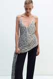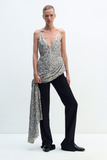 SEQUIN MAXI DRESS WITH A SLIT AND BACK TIE. HOOK-AND-EYE CLOSURE.