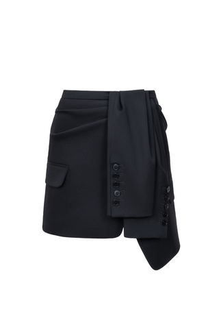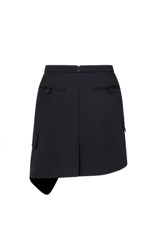 MINI SKIRT WITH BLAZER-TIED-AROUND EFFECT. TWO FAUX FRONT POCKETS AND TWO BACK WELT POCKETS. BACK ZIP FASTENING