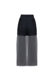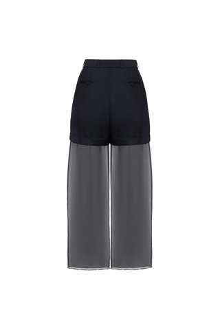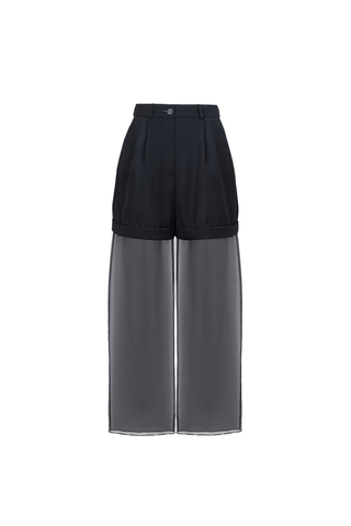 WIDE-LEG ORGANZA TROUSERS COMBINED WITH SHORTS. FRONT AND BACK POCKETS. ZIP AND BUTTON CLOSURE. WAISTBAND WITH BELT LOOPS