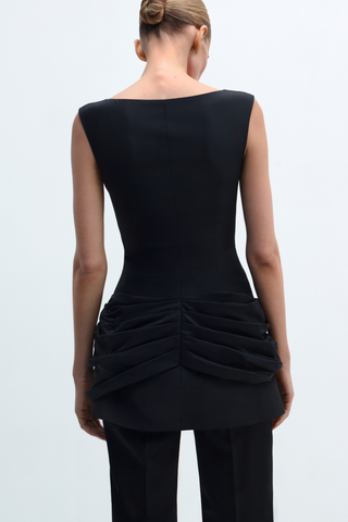 FITTED MINI DRESS WITH A TEXTURED LOWER SECTION AND SCULPTURAL SILHOUETTE. CONSEALED ZIP CLOSURE. A REFINED STATEMENT PIECE FOR MODERN, CONFIDENT STYLE