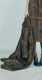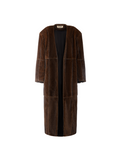 PATCHWORK STYLE STRAIGHT-CUT COAT WITH FAUX MINK.