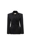 SCULPTURAL BLAZER WITH A SHARPLY TAILORED SILHOUETTE. CLASSIC SHOULDER LINE. DOUBLE-BREASTED FRONT WITH TWO BUTTONS. CONTOURED WAIST AND EXAGGERATED SIDE PANELS EMPHASIZE AN ARCHITECTUAL FORM