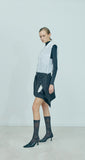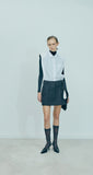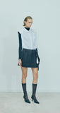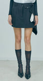 MINI SKIRT // BUTTONS FASTETING ON THE SIDE, ONE BUTTON AND ZIPPER ON THE FRONT POCKETS.