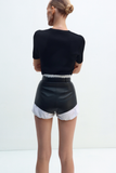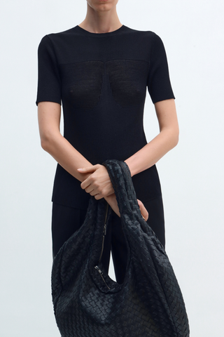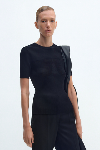 RIBBED-KNIT T-SHIRT FEATURING A BRA-INSPIRED FABRIC PATTERN.