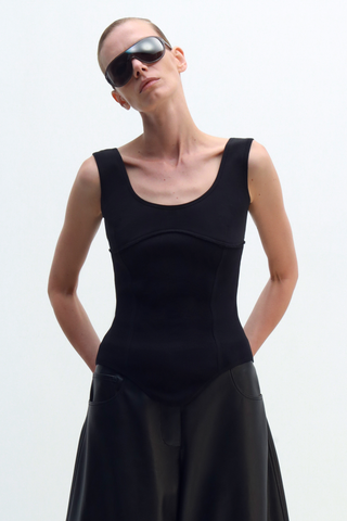 FITTED TOP WITH POINTED HEM AND CONTOURED SEAMS THAT FOLLOW THE BODY SILHOUETTE