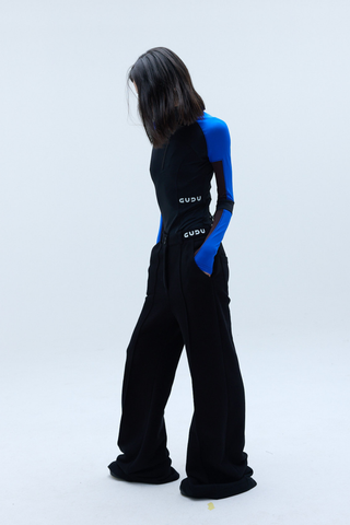 WIDE-LEG TROUSERS SLIGHTLY FLARED AT THE HEM WITH TOPSTITCHED CREASES. TWO SIDE AND BACK POCKETS. ZIP AND BUTTON CLOSURE. WAISTBAND WITH BELT LOOPS.